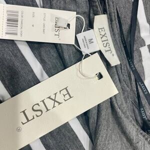 New 3/4 Sleeve Stripe Ribbed Maxi Dress from EXIST in Size Medium. This maxi dress features a classic black and white striped pattern that exudes timeless sophistication.
