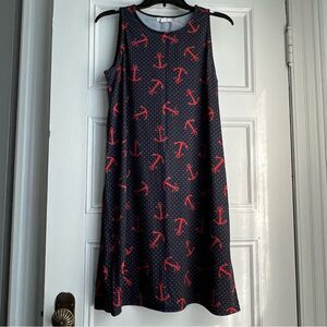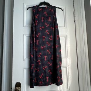 Exist Navy Blue w/White Polka Dot & Red Anchors Crewneck Sleeveless Dress S NWOT