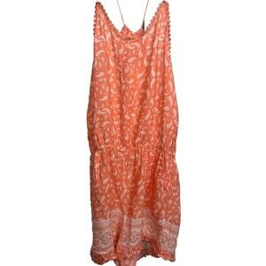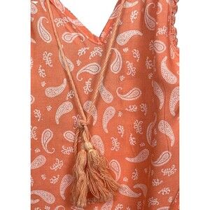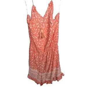 Exist Romper One-Piece Shorts Jumper Sleeveless Peach Paisley Print Ruffle Hem Crochet Trim Lightweight Adjustable Straps