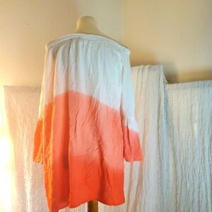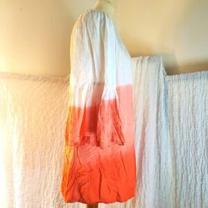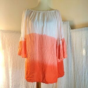 Off White/Coral color block tye dye print top. Bell sleeves. Light and flowy. Pre-owned in good condition. Please refer to pictures for best description and condition verification.
