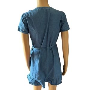 Exit Blue Chambray Denim Ruffle Accent Tunic Wrap Top Size Small