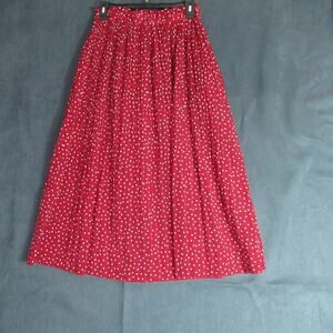 Exlura Skirt Women Medium Red Polka Dot Pleated Midi Swing Secretary Modest Geek