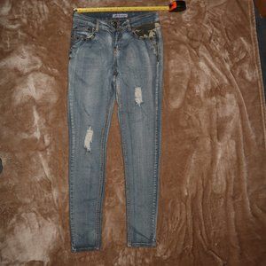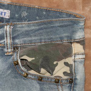 Exocet Distressed Camouflage Blue Jeans - Pyramid Stud Embellished w27x29 inseam