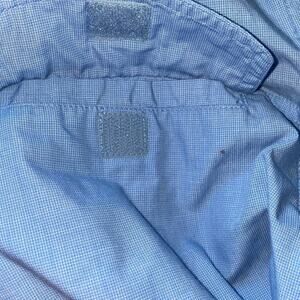 Exofficio Buzz Off Insect Shield Insect Repellant Apparel Fishing Hiking Button down Shirt Blue size XS. Button down roll tab long sleeves with two front flap chest pockets. Chest 20", Length 26.5" There are some signs of use and wear - there is an ink stain on one of the sleeves - but the shirt has plenty of life left. Please see all pictures for condition.