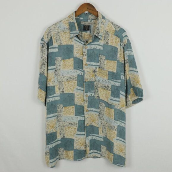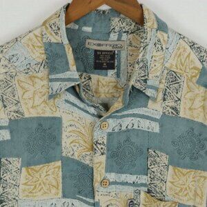 Exofficio Travel Men's Medium Blue Cream Rayon Short Sleeve Button Up Shirt