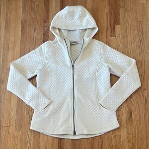 The Exofficio Cream Utility Jacket combines a quilted design with a practical hood, offering both style and functionality. Its lightweight construction makes it perfect for cool weather, while the white/cream color adds a touch of elegance. Ideal for those seeking a versatile and comfortable outerwear option.
