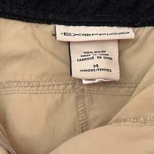 Exofficio Women’s Nylon Cargo Shorts Tan Zip Pockets 14 Outdoor Hiking Athletic
