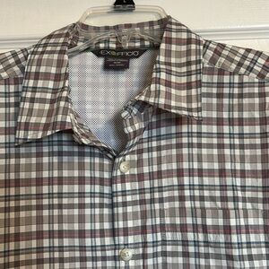 Exofficio men’s white and tan short sleeve button down shirt size medium