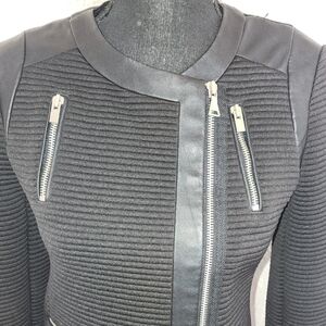 lightly used Sleek and stylish black jacket with zippered details. Perfect for any occasion.