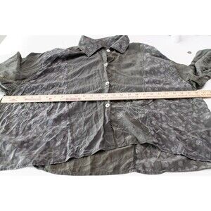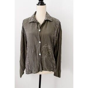 Exotic 100% Silk Green button down Shirt floral animal print details one size