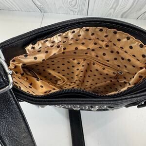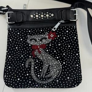 Exotic Cat Black Rhinestone Fun & Flirty Crossbody Purse Polka dot interior
