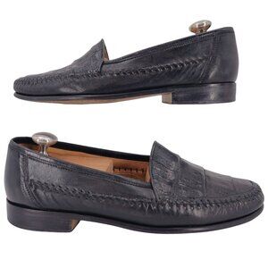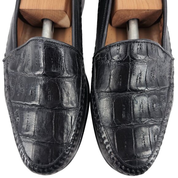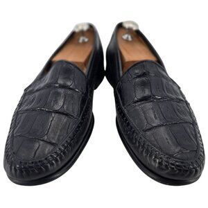 Exotic Crocodile Italian Dress Shoes Luca Lollini Mens 9M Handmade Black Loafers