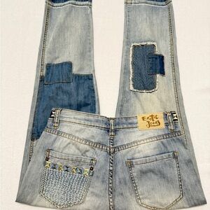 Exotic Jeans Desigual Size 28Blue Straight Leg Jeans with Patch Detail