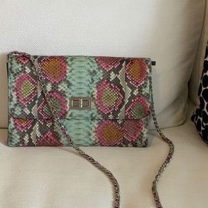 Custom made exotic leather python bag. Includes an attachable chain strap.