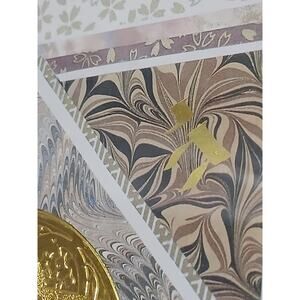 Multimedia Art features a gold-colored medallion or emblem embossed and handpainted gold, featuring an intricate, star-like design with geometric patterns.