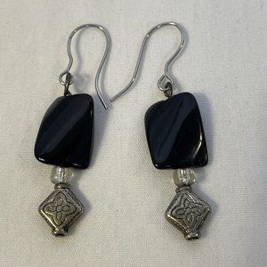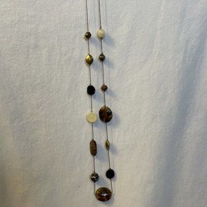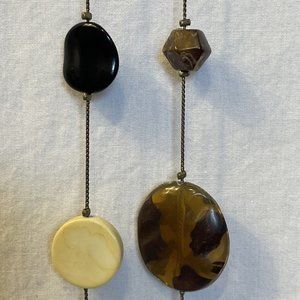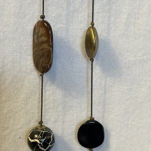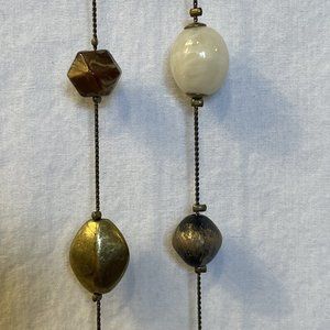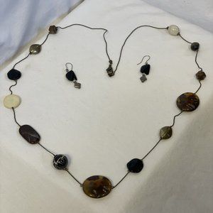 Exotic Stone, Glass and Metal Bead Necklace With Complimenting Earings 37" Long