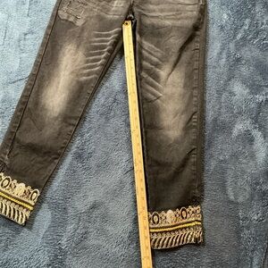 Exotic by Desigual Boho Black Jeans with Gold Accents size 30 Embroidered