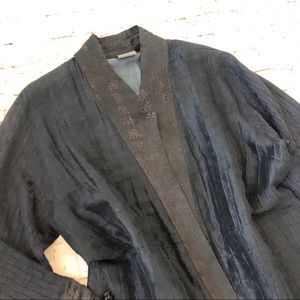 Exotic M/L Women's Cardigan jacket Oriental Black Silk Linen