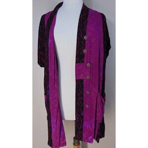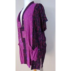 Exotica Long Open Front Kimono Duster S-3X Lagenlook Purple Oversize Witchy Goth