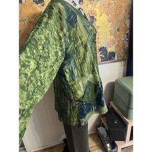 Exotica Womens Large Carmel Silky Green Batik Long Sleeved Kimono Jacket Pockets