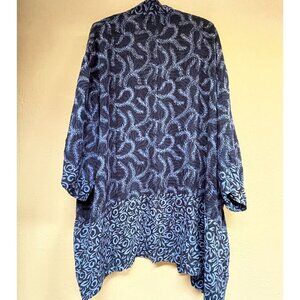 Oversized and cozy long sleeves open front cardigan. Has leaves print all over in blue color shade. Breathable and lightweight. Can also wear as cover up.