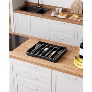 Expandable Cutlery Drawer Organizer Kitchen Utensil Tray Storage Adjustable Blac
