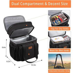 🧿Large Capacity with Expandable Design: Maximum size is 16L, fits 20 cans of soda(350ml). Dual Compartments for different uses, the top compartment of the insulated lunch bag is expandable, increasing the capacity by 4L. Normal size with 12L, handy to use for work, outing, construction, picnic, camping, day trips, and so on