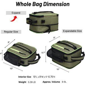 🧿Expandable Lunch Box Bags with Pockets ---- It is a thin lunch bag when not expand, zip off to convert it into a large lunch box and you will get double space. Exterior measuring 10"*8"*4" (L*W*H) and expands to 10"*8"*6.7" (L*W*H), fits up to 9 cans