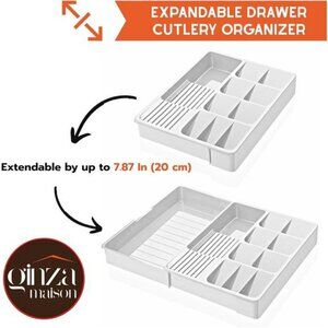 🧿MAXIMIZE YOUR DRAWER SPACE – Expandable sides adjust to fit most drawers, providing a custom fit that keeps every inch of space organized and clutter-free. Expandable Plastic Utensil Organizer for Drawers. Expandable – up to 7.87 In (20 cm) wider. Please note: the expandable part is separate and not fixed. Its ingenious expandable design effortlessly adjusts, fitting any drawer perfectly to organize all your utensils and kitchen tools.