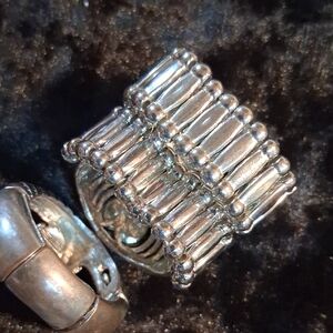 This exquisite ring set features a blend of silver and gold tones, showcasing intricate filigree and rope-style designs. The ornate patterns and textures create a captivating vintage appeal, perfect for adding a touch of elegance to any ensemble. Each ring is crafted with detailed metalwork, offering a unique and eclectic look when worn together.