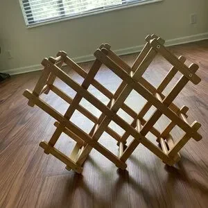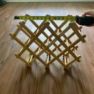 Versatile expandable wooden rack. Perfect for organizing spaces. Natural wood finish.