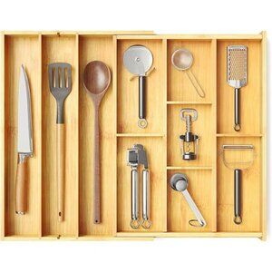 Expandable bamboo silverware drawer organizer utensil flatware cutlery tray hold