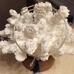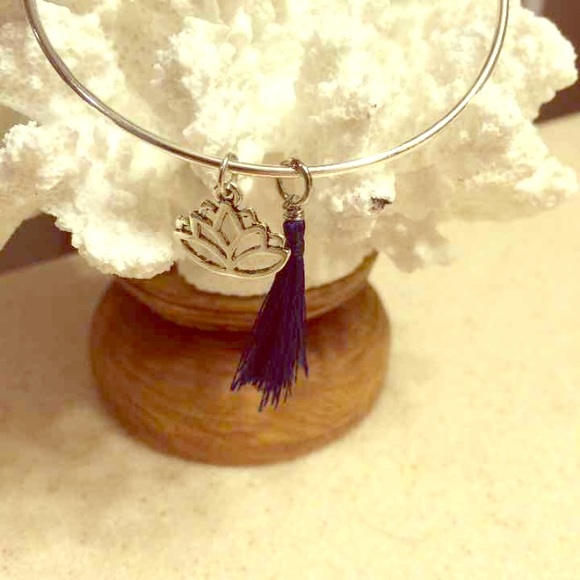 Lotus flower and dark blue tassel expandable bangle bracelet