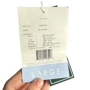 Features: Durable outer shell, quilted interior, rugged outdoor design. Filled 80% Down / 20% Feathers