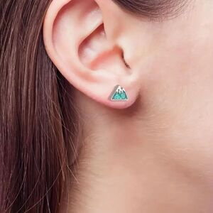 🌄 "Expedition" Silver & Turquoise-Colored Mountain Stud Earrings