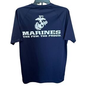 Expert Brand Shirt Crew Neck Marines Logo Graphic Blue White Short Sleeve Men Size Medium Marines Summer Athletic Casual