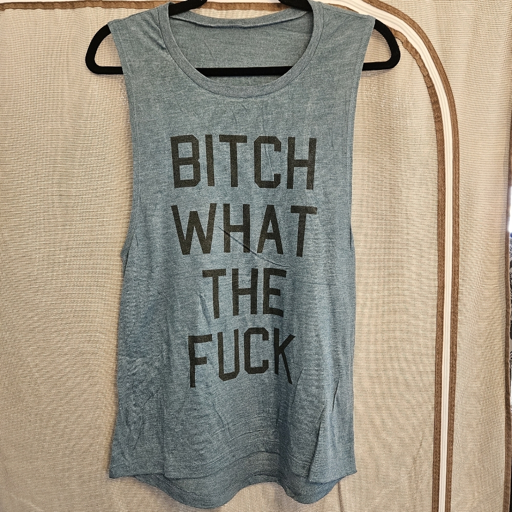 "B**** What The F***" tank top with wide armpit openings