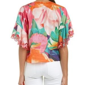 Exploded floral printed top w/ dolman sleeves with ruffled embroidered eyelet cut-out trim, 100% cotton lawn. New w/ tags size M by Natori