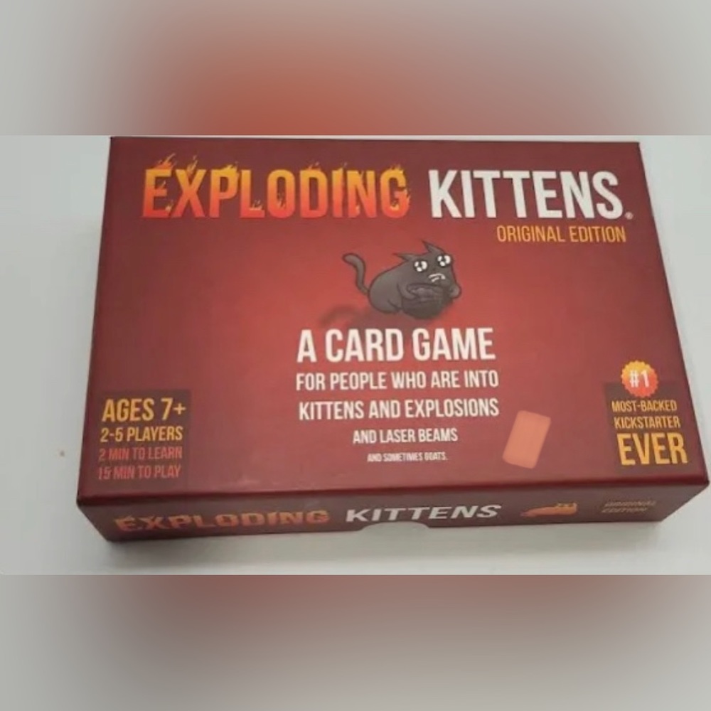Exploding Kittens is a highly-strategic, kitty powered version of Russian Roulette. Players draw cards until somebody draws an Exploding Kitten, at which point they explode and are out of the game. To avoid exploding, they can defuse the kitten with a laser pointer or catnip sandwich OR use powerful action cards to move or avoid the Exploding Kitten. Betray your friends. Try not to explode. The last player left alive wins.