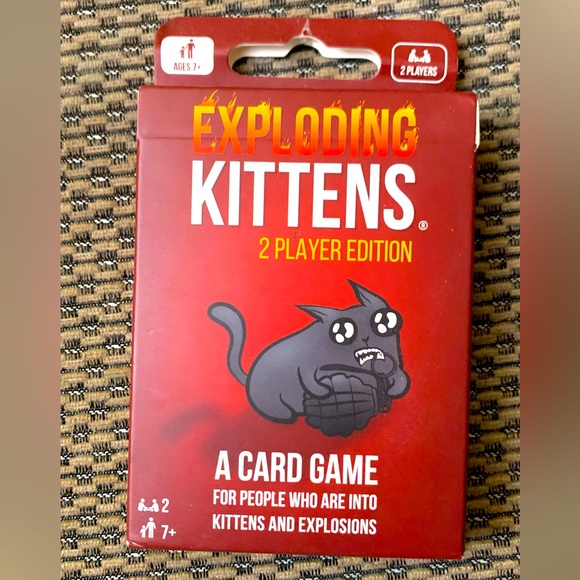 2-player party game for people who are into kittens and explosions and laser beams and sometimes goats. This compact 2-player edition of Exploding Kittens lets you go head to head with just one other person. Exploding Kittens is a highly strategic, kitty-powered version of Russian Roulette.