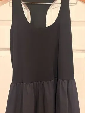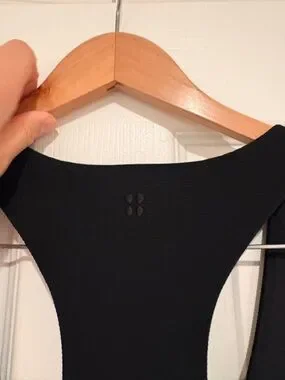 Stretchy ribbed knit top with scoop neck and sporty racerback.