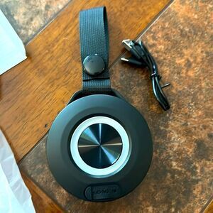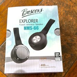 Explorer NMS-66 wireless speaker. Sleek black design with silver accents. Perfect for travel.