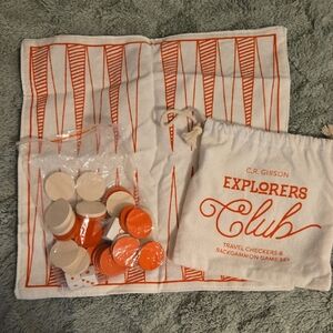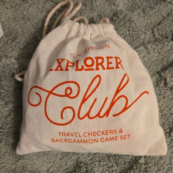 Explorer's Club travel checkers and backgammon game set in a drawstring bag. Perfect for on-the-go fun. Still in Original Packaging. Perfect for the family or couples camping trip!