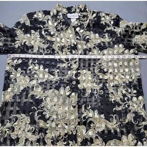Expose Black Gold Shirt Preppy Floral Long Sleeves Button Up Womens Size L Top