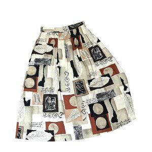 Expose Vintage 80s 90s Abstract Collage Print Pleated Front Skirt Size Large