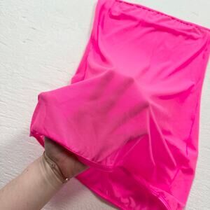 this bold neon pink mesh mini dress by exposed features a sheer, stretchy nylon-spandex blend with a strapless bandeau-style fit. designed as an ultra mini bodycon, it’s perfect for layering, clubwear, or festival looks.