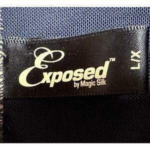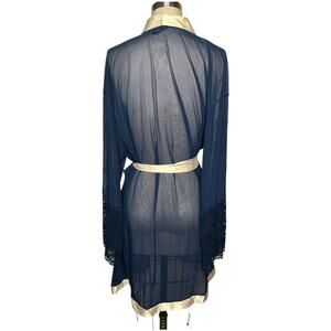 Exposed by Magic Silk Navy Ivory Lightweight Mesh W. Lace Trim Kimono Robe L/XL