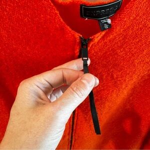 Express 100% Boiled Wool Bright Orange Coral Zip Front Longline Cardigan XL