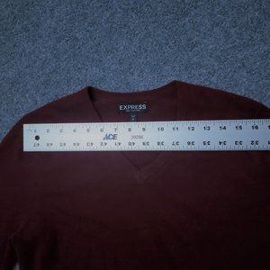 This Express 100% Cashmere Small / Petite Burgundy V Neck Long Sleeve Sweater is pre-owned and in good condition. The measurements are: Sleeves: 25" Shoulder to Shoulder: 16" Bust: 37" Length: 25.5". Please review the photos to make your own assessment, thank you!