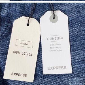 Original denim with light fading and distressing at knees. Express vintage collection. 100% cotton, non stretch. Ankle length.